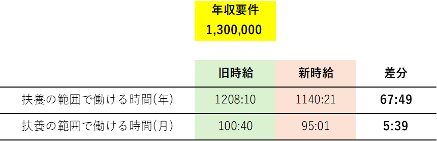扶養の年収要件の上限額は変わらないのに、1時間当たりの金額が上がるとなれば、労働時間を減らす必要があります。