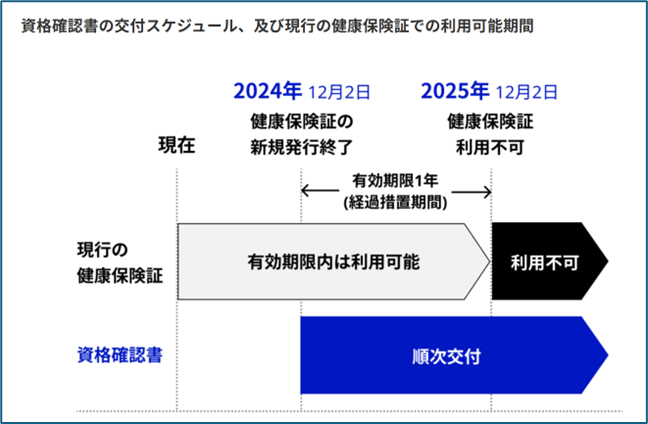 ※12月2日以降の使用できなくなった従来の健康保険証の取り扱いや資格確認書の発行方法については、医療保険者の最新情報をご確認ください。