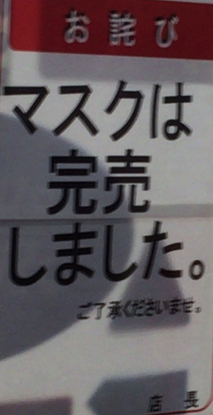 マスクや除菌ジェルなどが品薄になっています。
